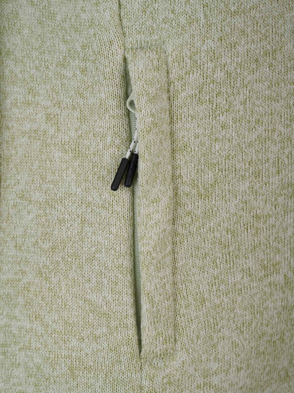 De fijn gebreide stof ademt en voelt licht aan. Het ongevoerde damesvest is geschikt voor alle seizoenen. Het vest heeft een twee met rits afsluitbare heupzakken. De taille boord is te verstellen met koordjes. Het vest valt net over de heupen waardoor deze mooi aansluit op het lichaam. De stof is gemêleerd gebreid.